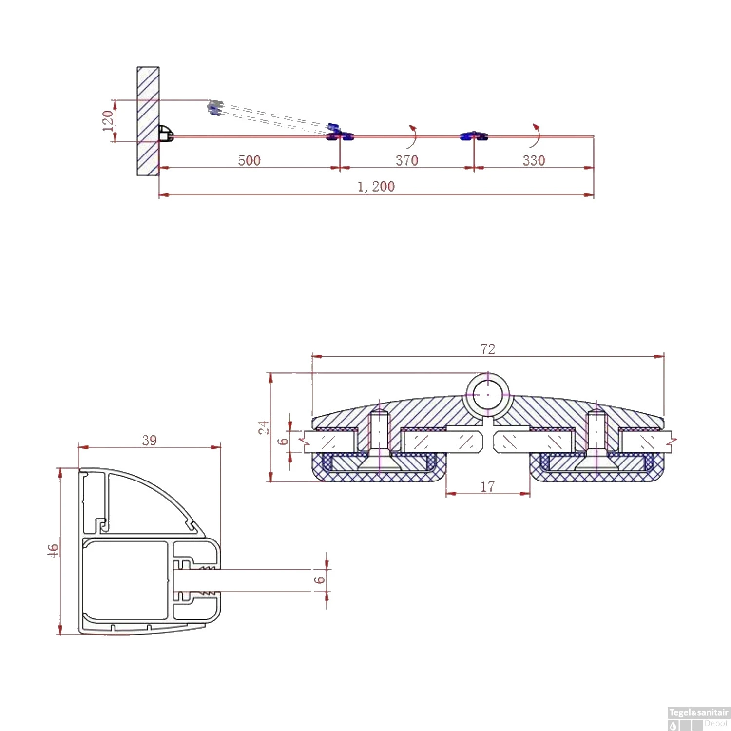 Specificaties Badwand Boss & Wessing Bibi Recht 120x140cm Scharnierend 3-delig Omkeerbaar 6mm: