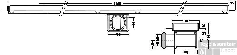Berg Van Den Douchegoot 140 Cm. M/ Flens Zij Uitlaat 50 Mm. Rvs