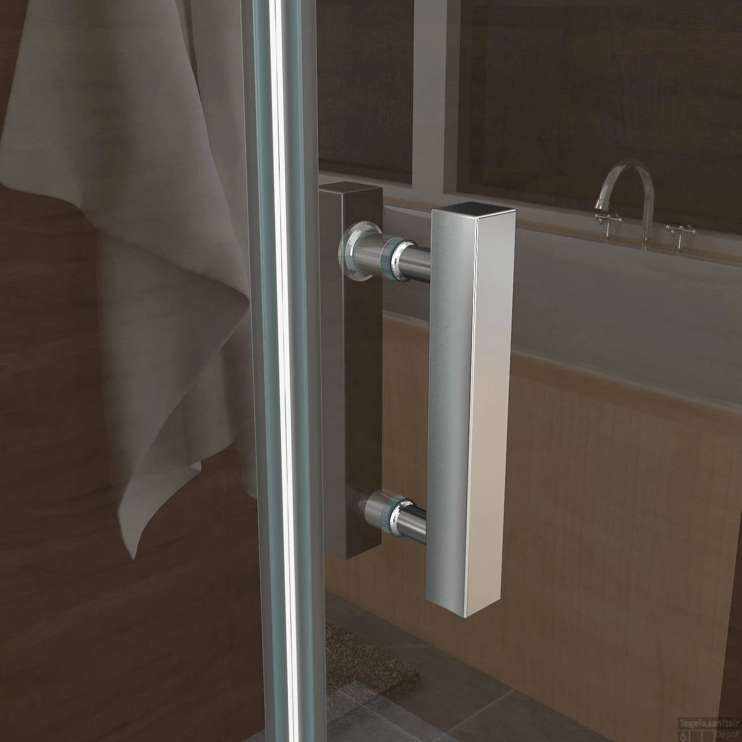 In de profielen zit 2 cm aan stelmogelijkheden. Een muur hoeft dus niet 100% haaks op de vloer te staan om deze douchecabine te kunnen plaatsen. De stabilisatiestang is gemaakt van verchroomd messing, een sterk materiaal dat voor goede stabiliteit zorgt.