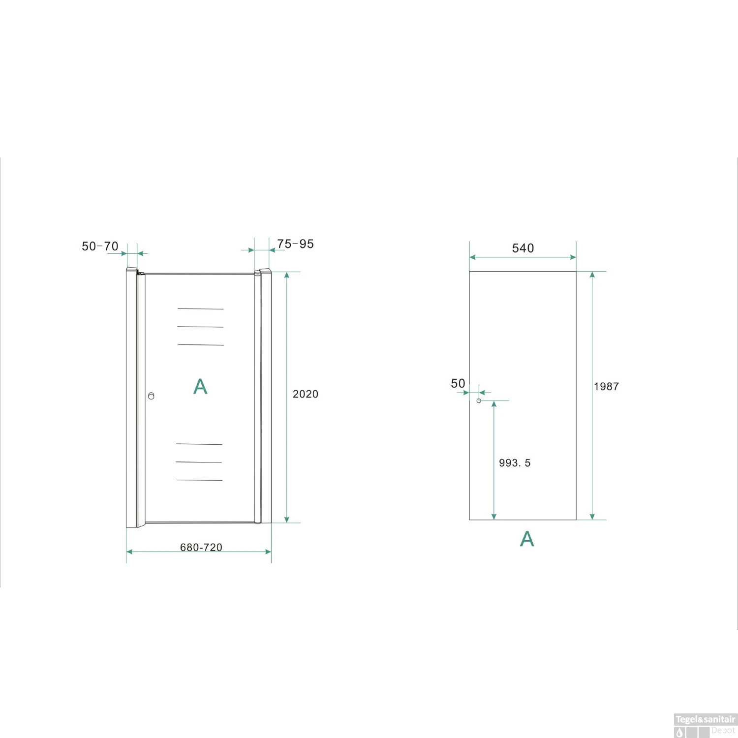 Verder is de nisdeur van Boss & Wessing met profiel 70 x 202 cm 8mm NANO coating universeel te plaatsen. u kan er een douchebak onder plaatsen daardoor worden de maten 2 a 3 cm kleiner dan in de specificaties.