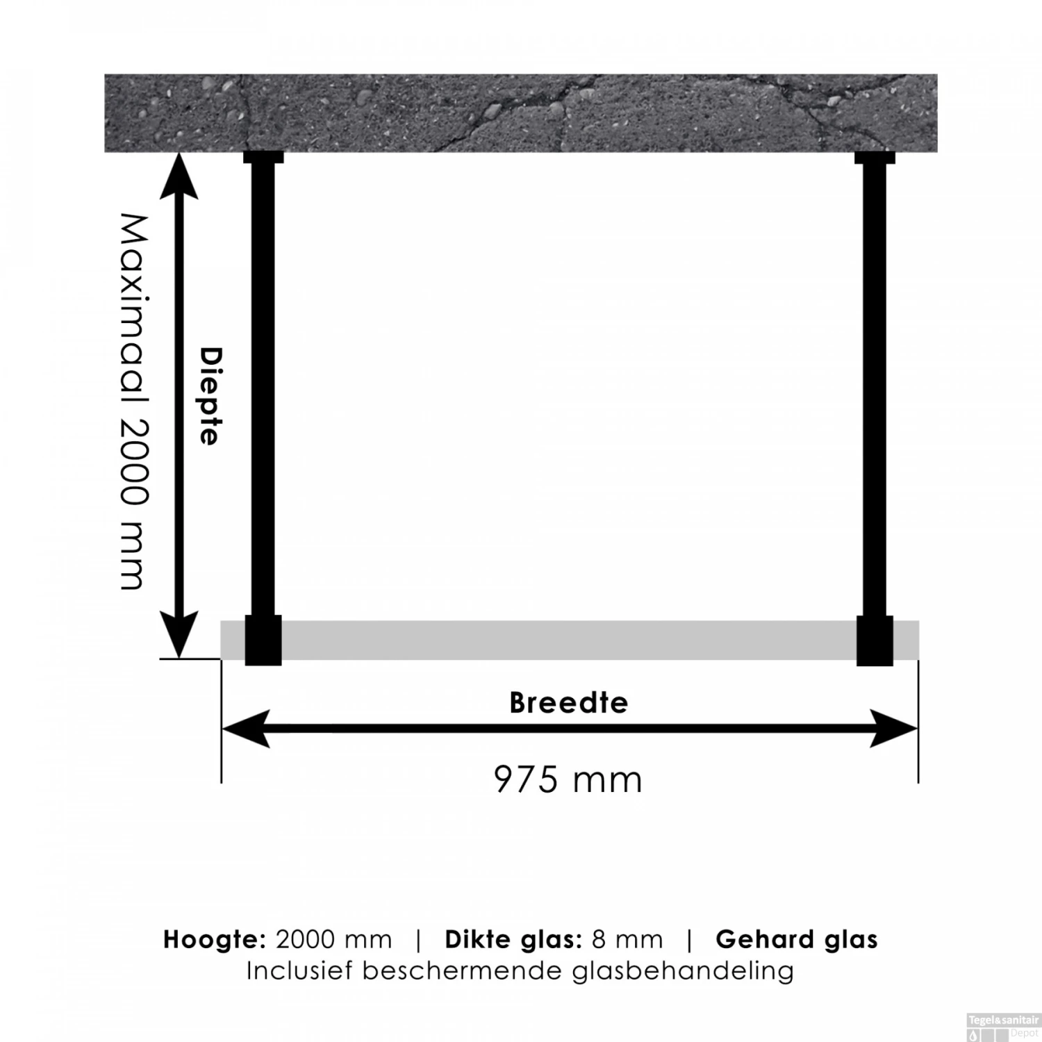 - Diepte: Maximaal 200 cm