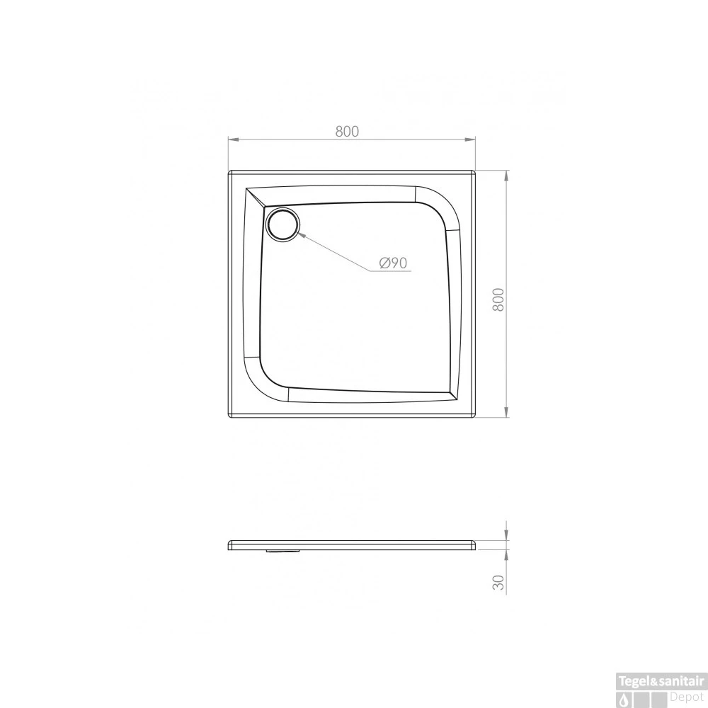 De vierkante douchebak heeft een breedte van 80 cm, een diepte van 80 cm en een hoogte van 3 cm. Onderaan de webpagina kunt u ervoor kiezen om een bijpassende douchebakafvoer van het merk Allibert aan de bestelling toe te voegen. Deze douchebakafvoeren zijn leverbaar in een chrome, witte en extra platte variant voor een meerprijs.