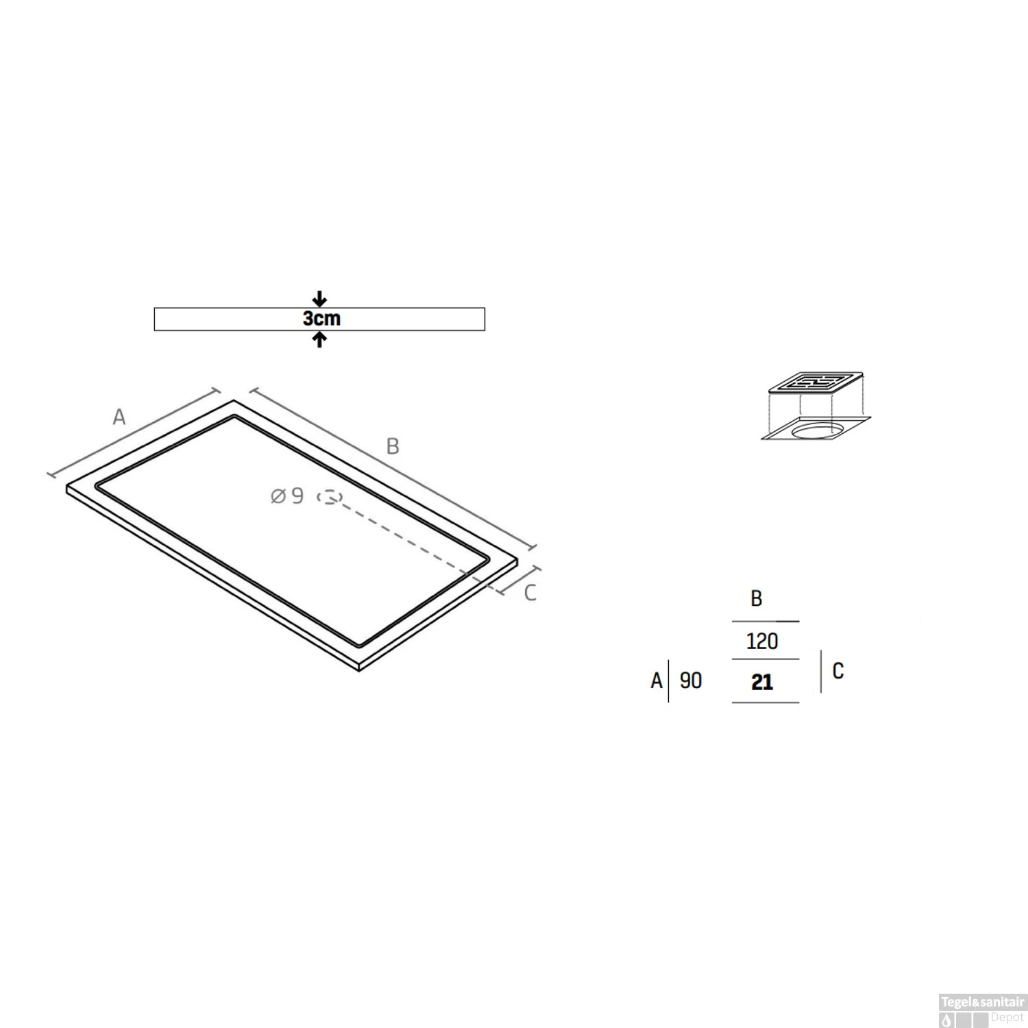 - Afmeting afvoergat: 9 cm