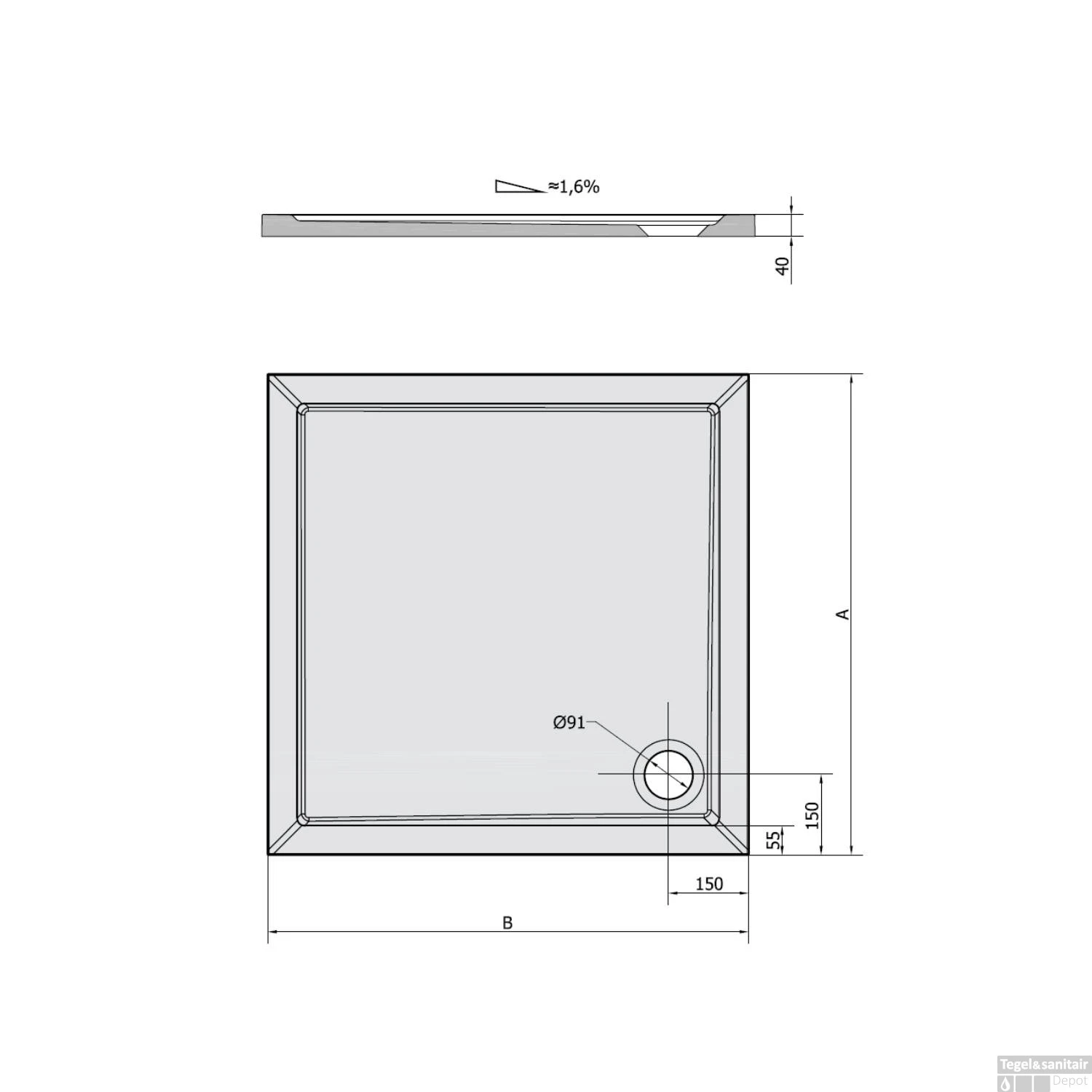 Specificaties Douchebak Gegoten Marmer 80x80x4 cm Vierkant Wit Sapho Aura: