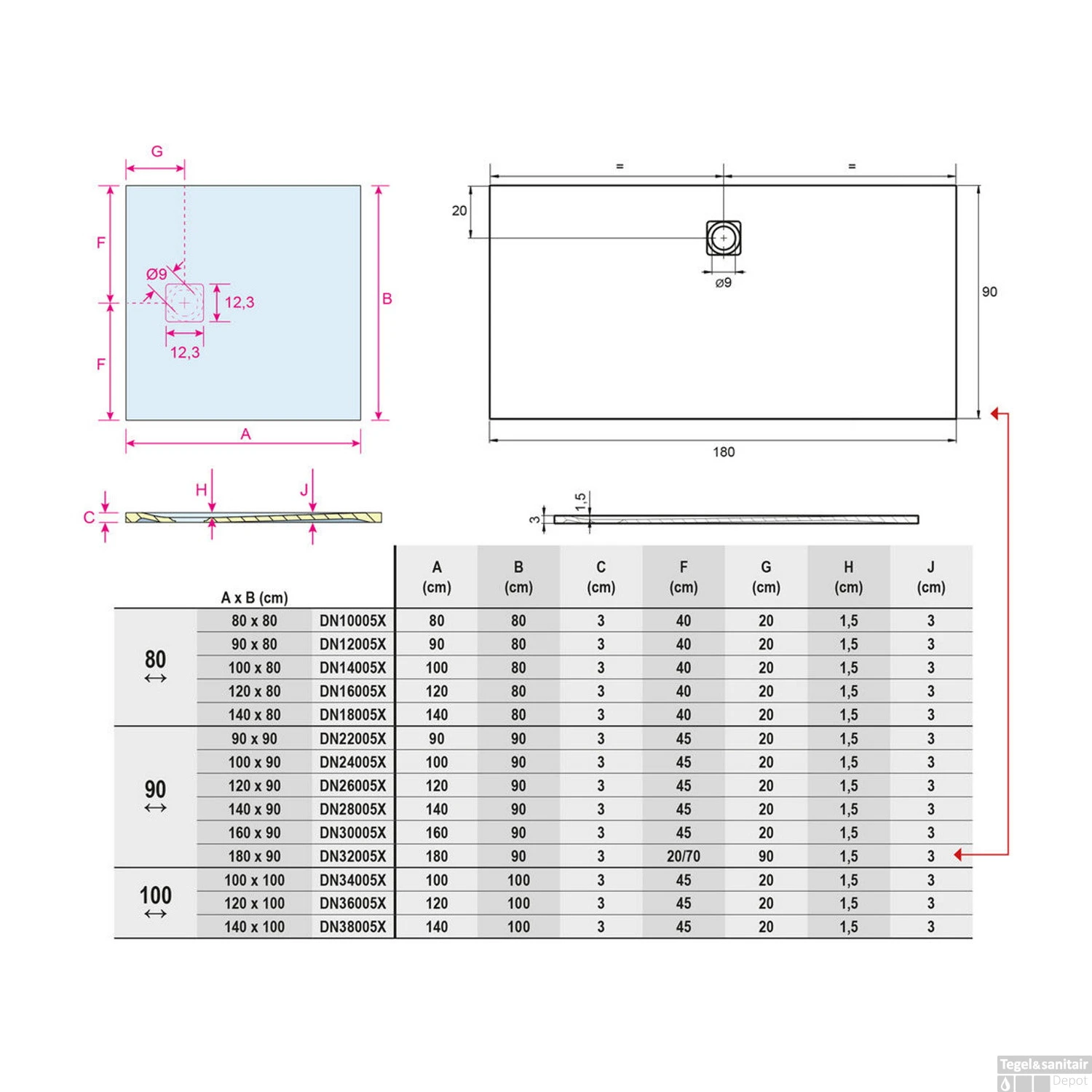 - Afmeting afvoergat: 9 cm