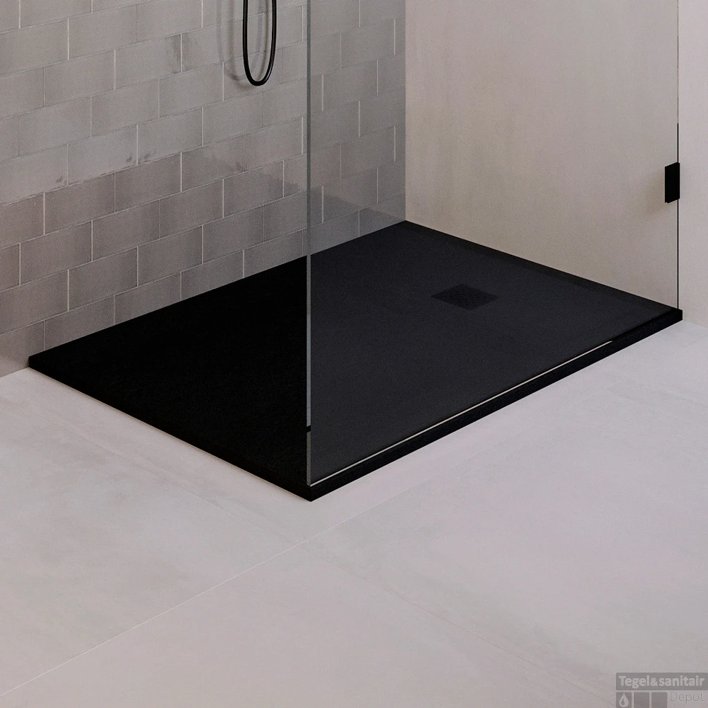 Een stijlvolle en zeer dunne douchebak gemaakt van hoogwaardig mineraalmarmer (ook wel polybeton of kunstmarmer). Mineraalmarmer staat bekend om zijn onderhoudsvriendelijke en duurzame eigenschappen. De douchevloer is antibacterieel, beschikt over anti-slip en heeft een hoge resistentie voor chemicaliën en verkleuring door UV-licht. De douchebak beschikt over een subtiele steen textuur met een natuurlijke uitstraling en is verkrijgbaar in het mat wit en mat zwart.