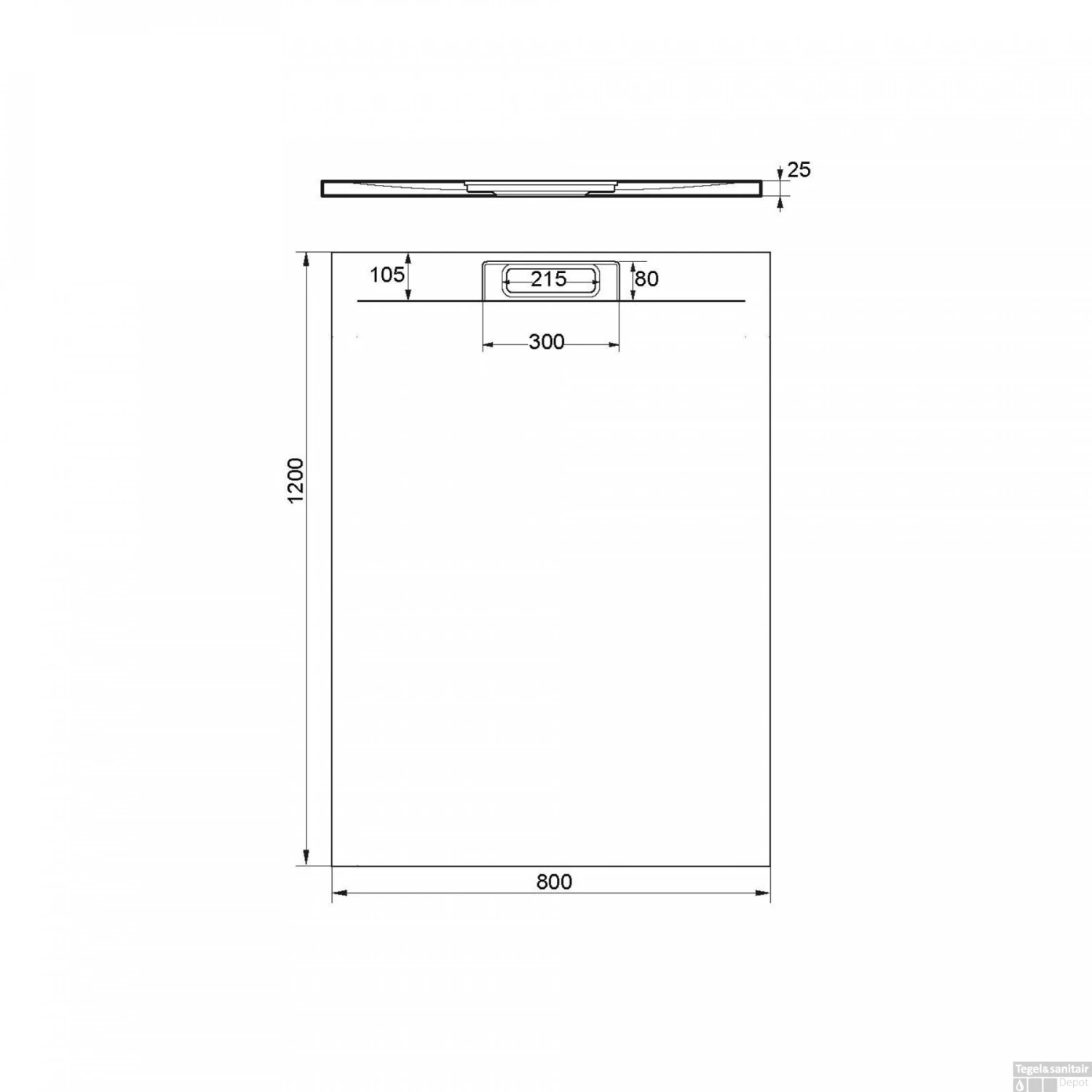- Afmetingen afvoergat: 215x300x80 mm