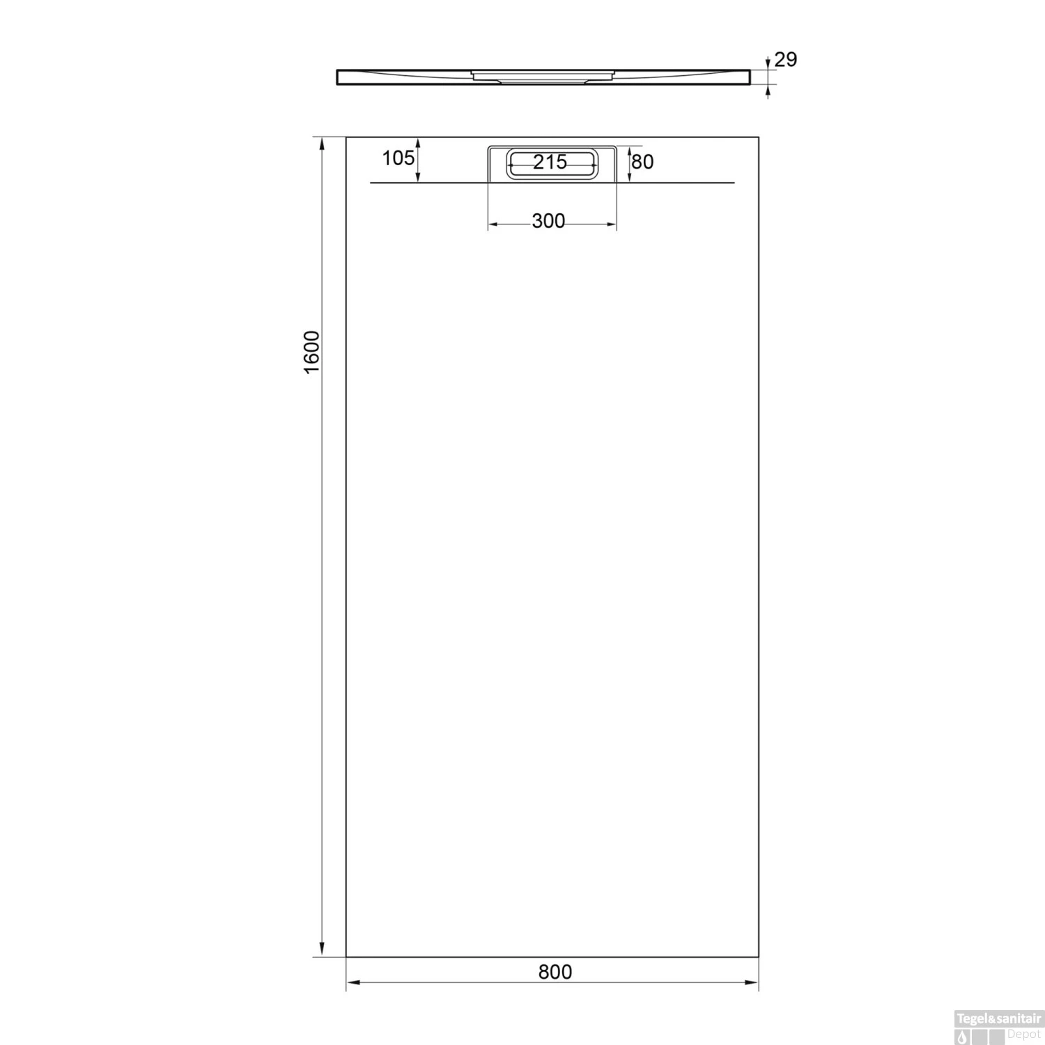 - Afmetingen afvoergat: 215x300x80 mm