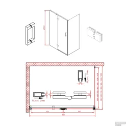 Dit A-merk is gemaakt van 8 mm dik veiligheidsglas en heeft mat zwarte aluminium gesatineerde profielen en messing mat zwarte scharnieren en grepen. Omdat de douchecabine geen vloerbevestiging onder het vaste deel heeft, kunt u direct na het plaatsen dit deel transparant afkitten op de vloer. Ook is het mogelijk om de cabine op een douchebak te plaatsen.Hiervoor is rekening gehouden met de afmetingen.