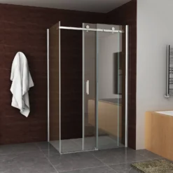 5-hoek Douchecabine Sealskin Custom Swingdeur Links 90×90 Cm Zilver Hoogglans Helder Glas
