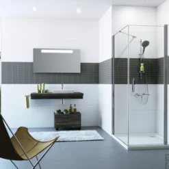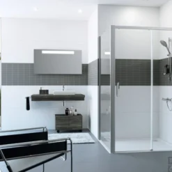 Draaideur In Nis Helder Veiligheidsglas Met Antikalklaag Sealskin Inc. 90×200 Cm Zilver Hoogglans