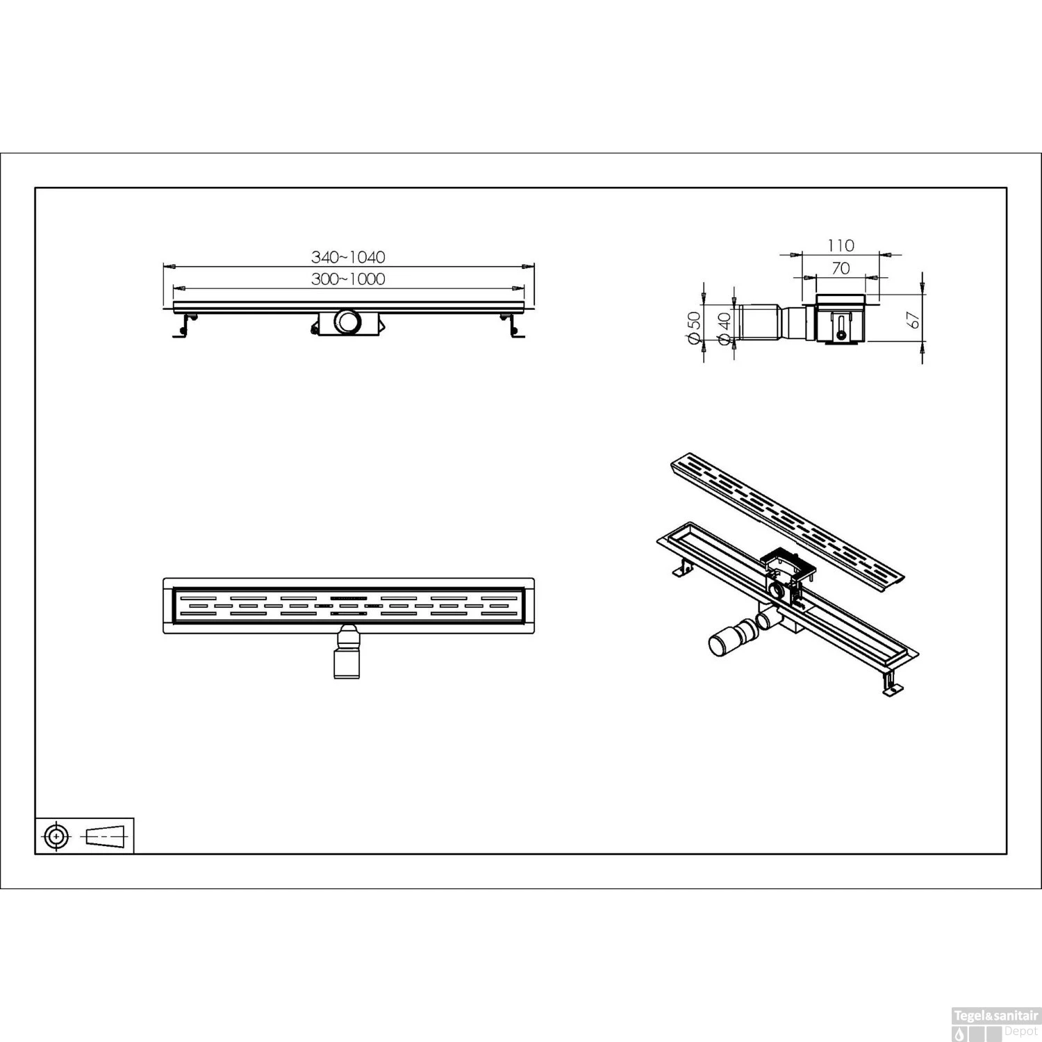 Douchegoot Wiesbaden Met Flens 100x7cm 6.7cm Diep Gunmetal