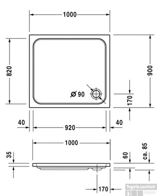Duravit D-code Douchebak 100x90x8,5 Cm. Wit