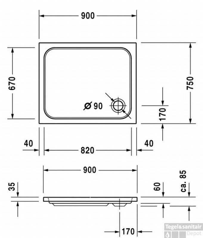 Duravit D-code Douchebak 90x75x8,5 Cm. Wit