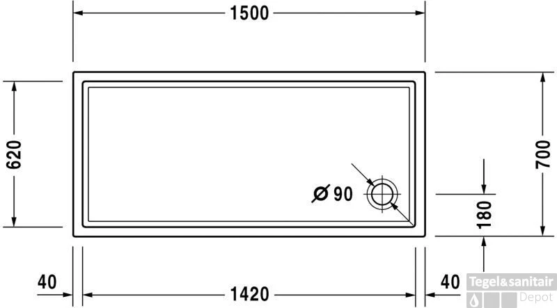 Douchebak 150 x 70 x 2 cm.