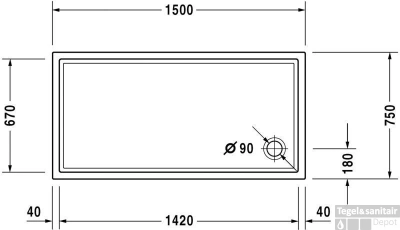 Douchebak 150 x 75 x 2 cm.