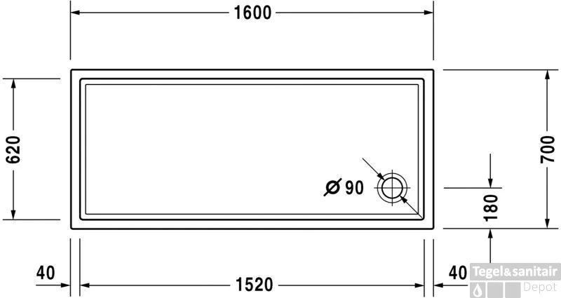 Douchebak 160 x 70 x 2 cm.