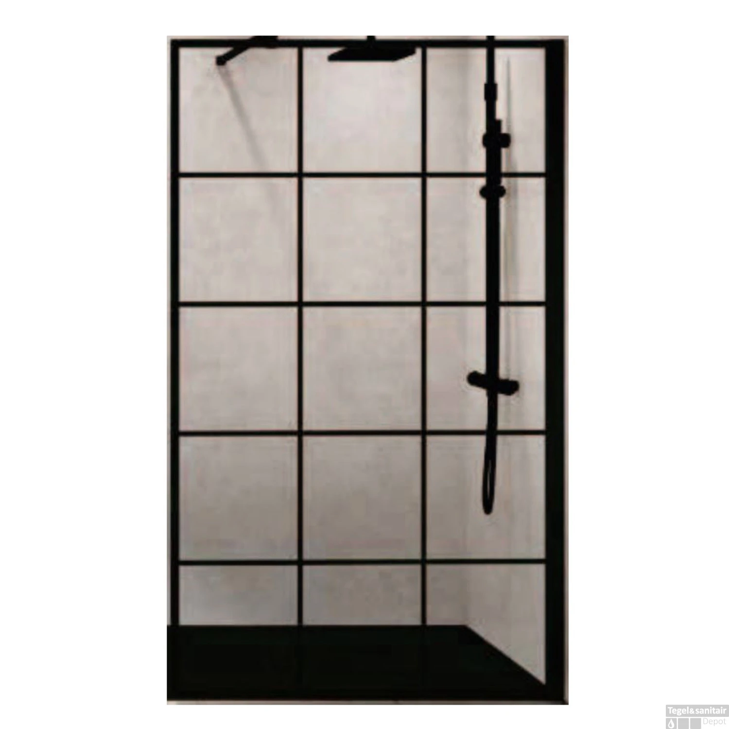 Inloopdouche Novellini Kuadra H Squares 160×200 cm Helder Glas Mat Zwart Raster