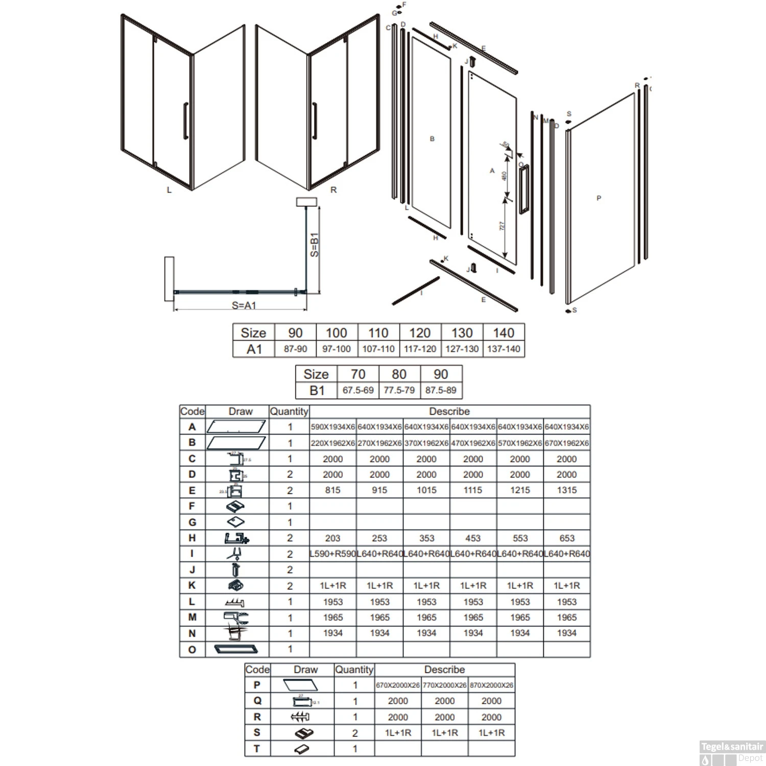 De klapdeur is voorzien van een aluminium profiel en is uitgevoerd in de kleur wit. De douchedeur heeft een standaard hoogte van 200 cm, terwijl de glasdikte 6 mm bedraagt. De glaswanden van dit artikel zijn voorzien van een anti-kalk coating die ervoor zorgt dat kalk- en zeepresten zich minder snel aan het glas hechten. Desalniettemin adviseren wij om de glasplaten na een douchebeurt altijd af te spoelen met koud water en deze droog te trekken: op deze manier behoudt het glas het beste haar glans.