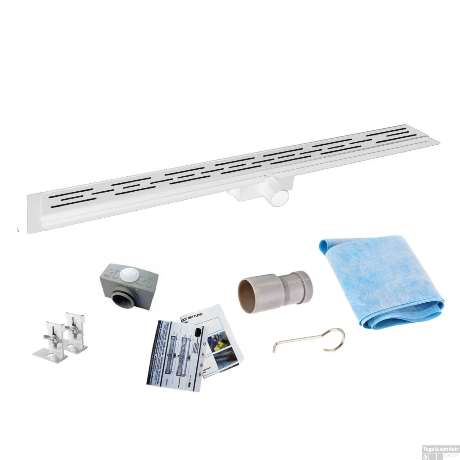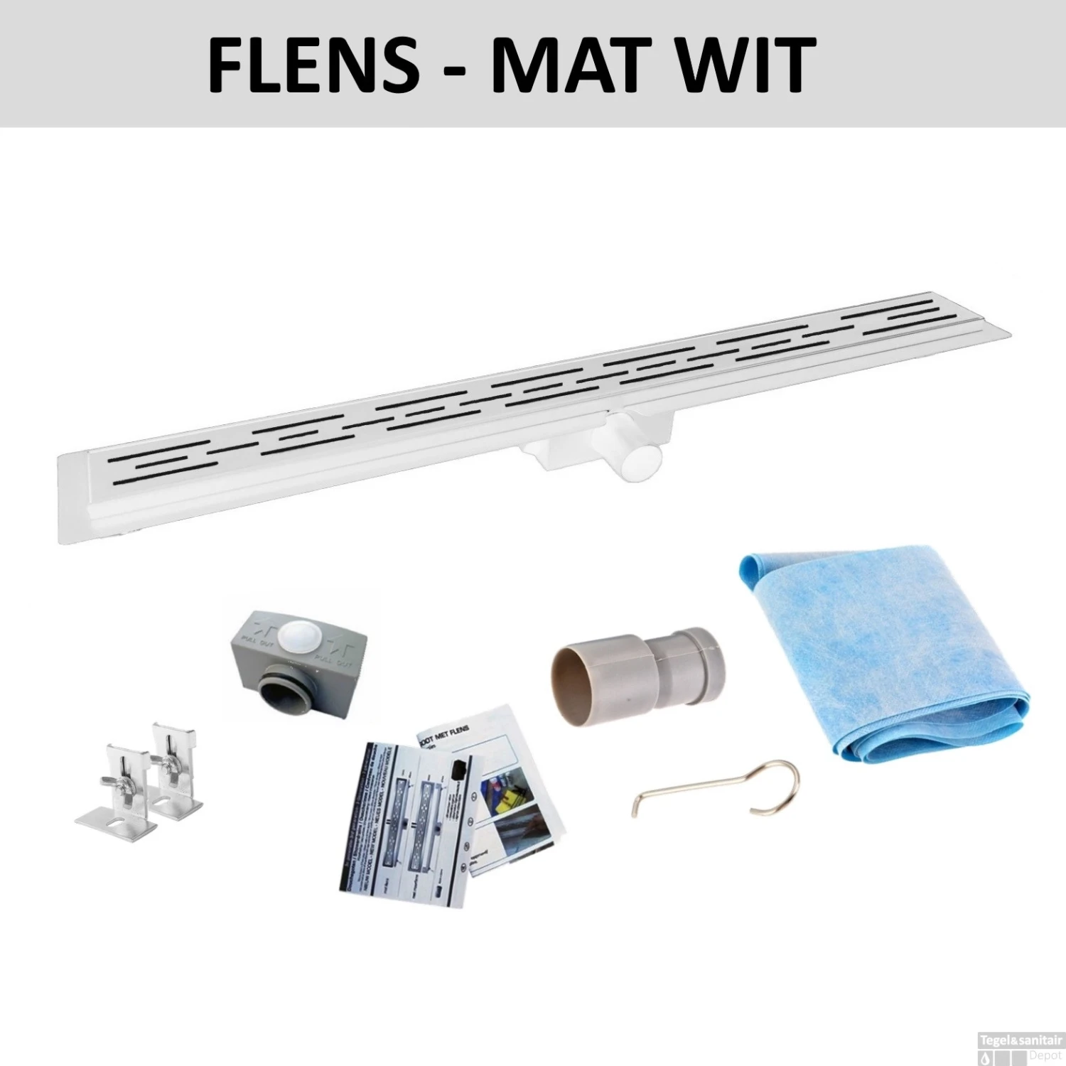 Mat Wit RVS Douchegoot Flens met Uitneembaar Sifon MAT WIT