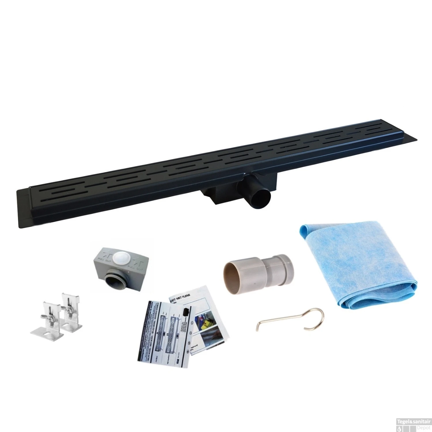 Mat Zwarte RVS Douchegoot Flens met Uitneembaar Sifon 30x7cm 6,7cm Diep MAT ZWART ROOSTER