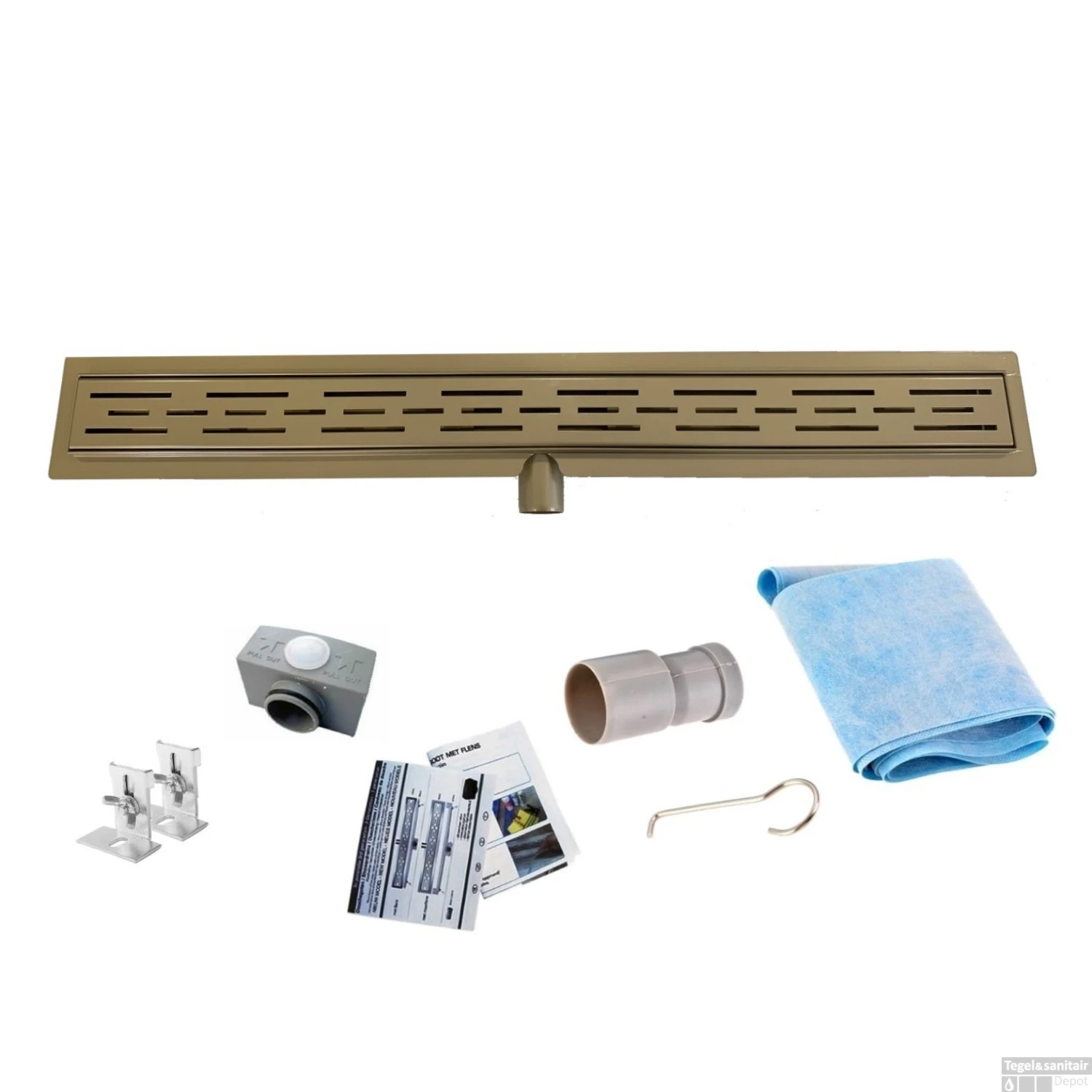 Het ouderwetse douche putje is vervangen door een moderne en stijlvolle douchegoot. Het putje is klein en moeilijk schoon te houden. Daarentegen is de douchegoot te bestellen in veel verschillende maten. Ook het sifon is uitneembaar voor het efficiënt schoonhouden van de goot. En nu dus leverbaar in prachtig goud.