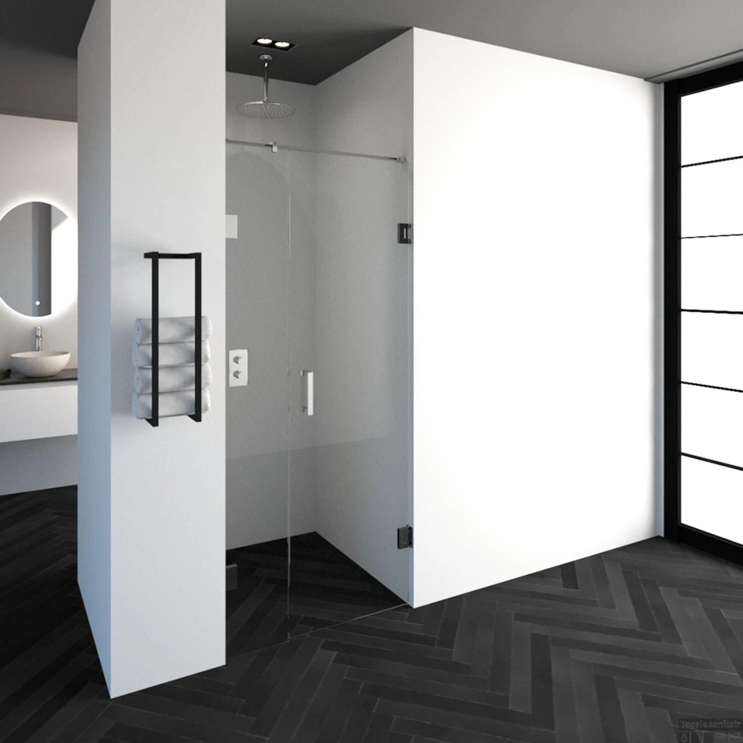 Deze complete nisdeur bestaat uit een inloopwand en draaideur met chroom beslag. Inclusief glasbehandeling en optionele kunststof profielen. De hoogte is 200 cm. Deze nisdeur straalt luxe uit door zijn design en kleur.