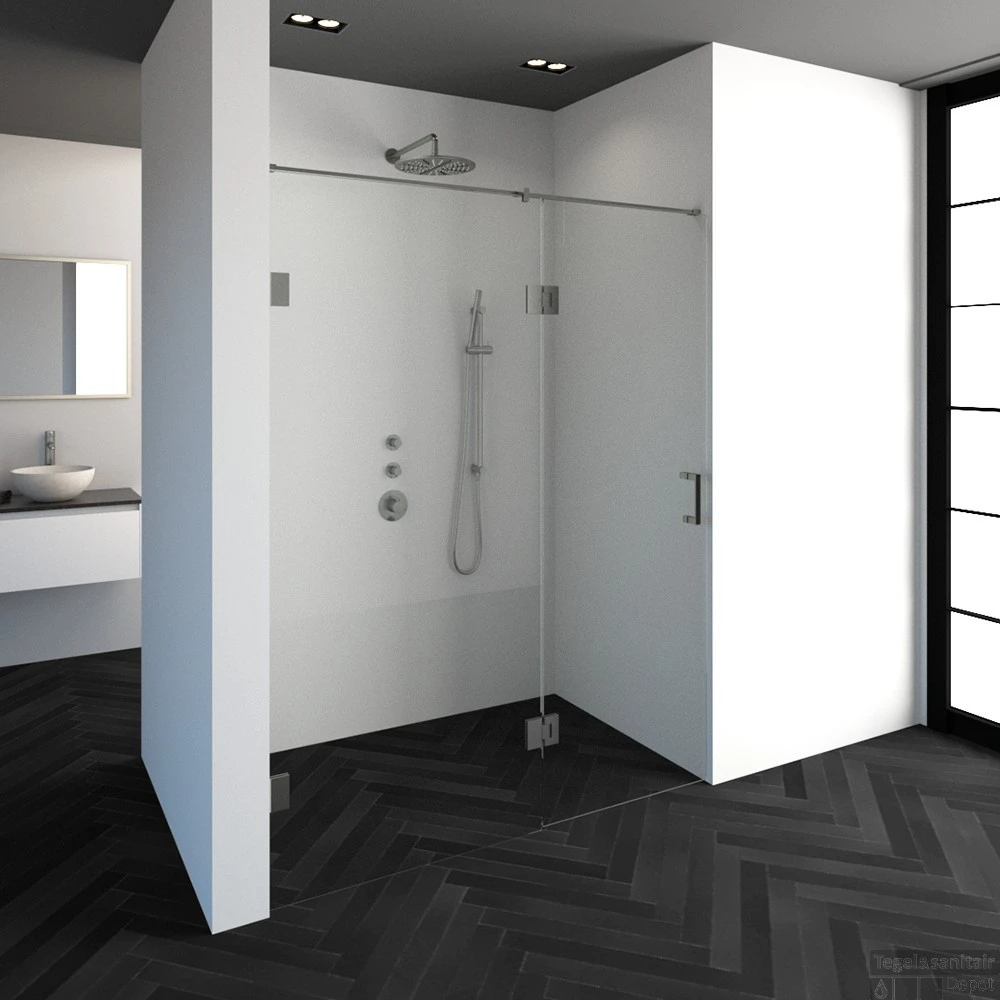 Specificaties Nisdeur Compleet Just Creating Profielloos 2-Delig (Draaideur Bevestigd op Inloopwand) 160×200 cm 90/70 RVS: