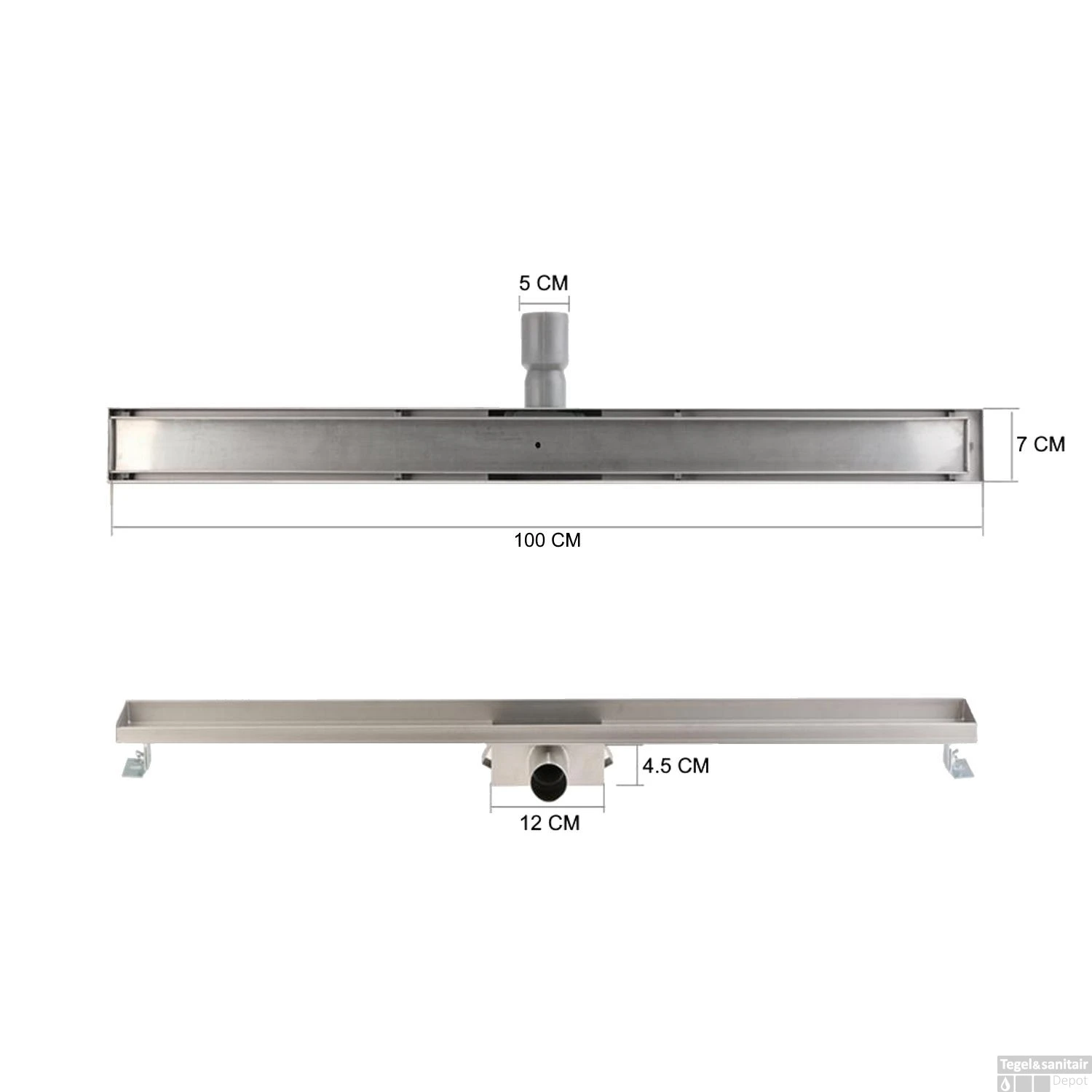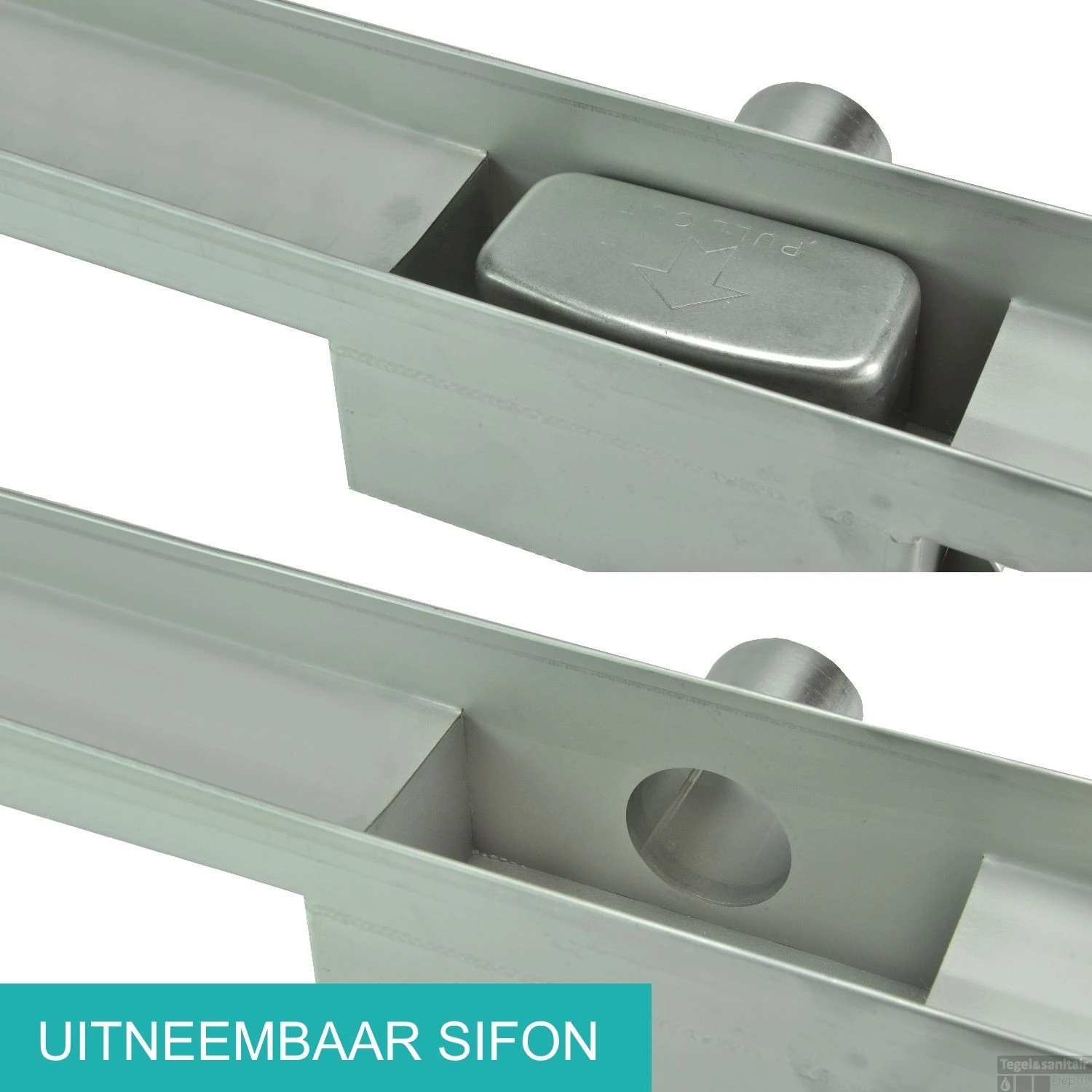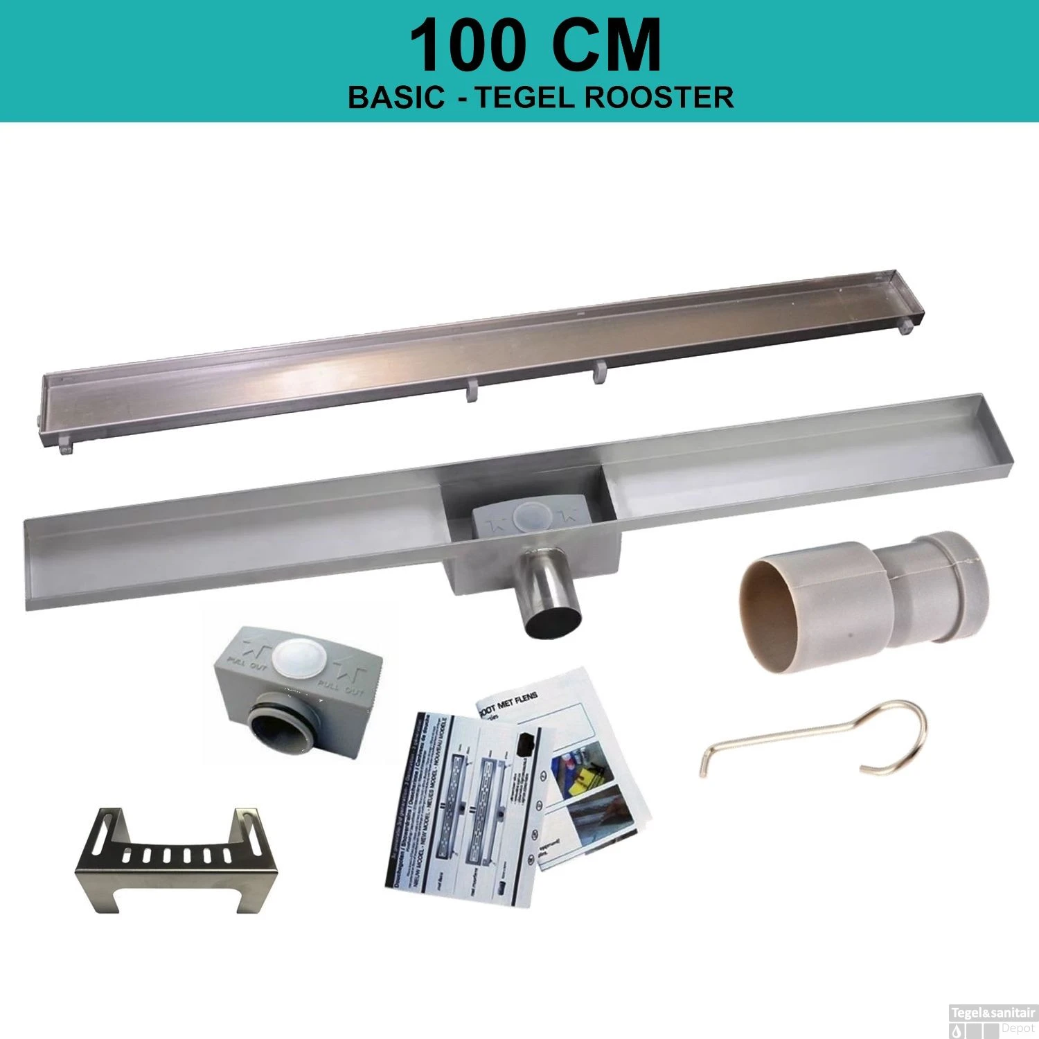 RVS Douchegoot BASIC met uitneembaar sifon 100x7cm 6,7cm diep TEGEL ROOSTER