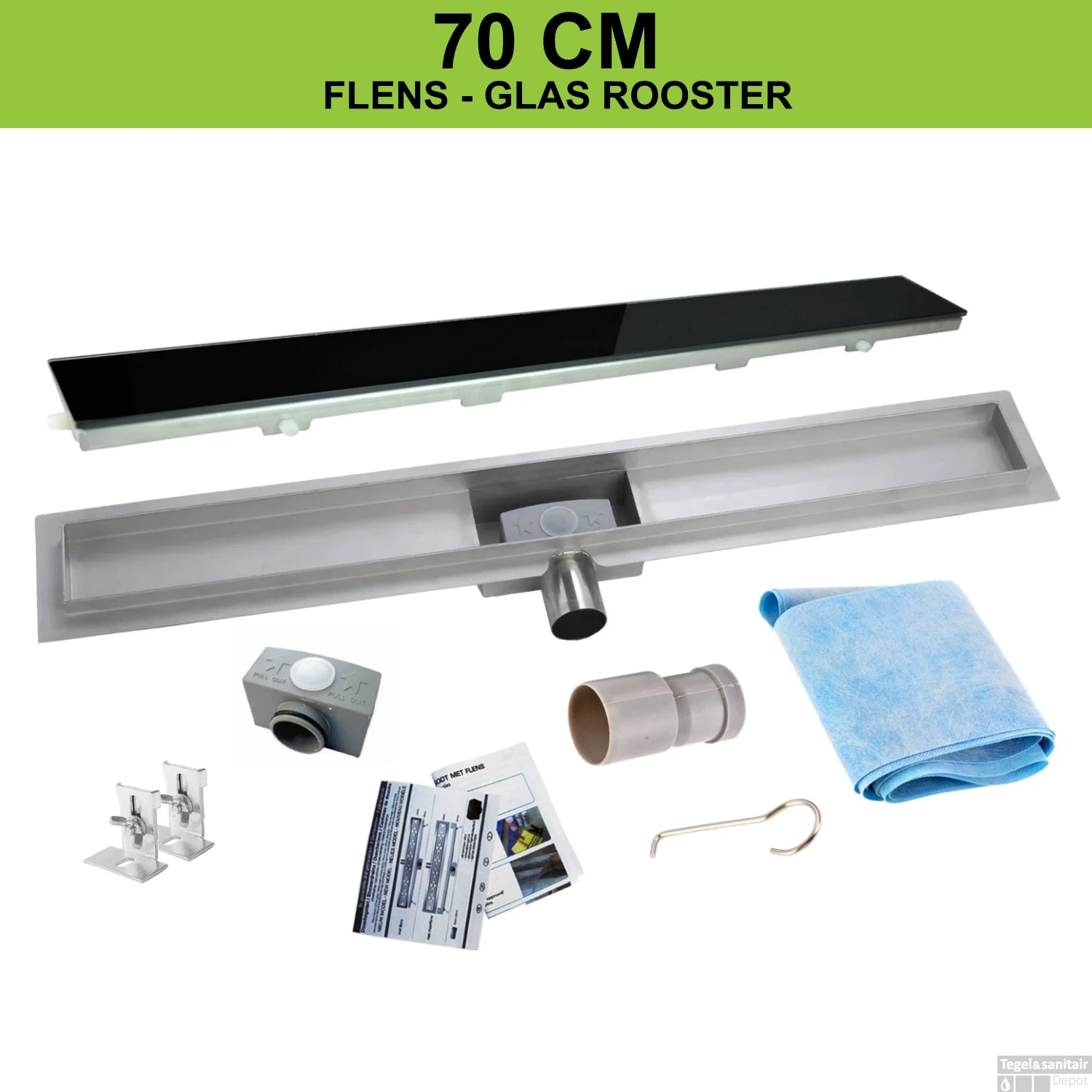 RVS Douchegoot flens met uitneembaar sifon 70x7cm 6,7cm diep GLAS ROOSTER