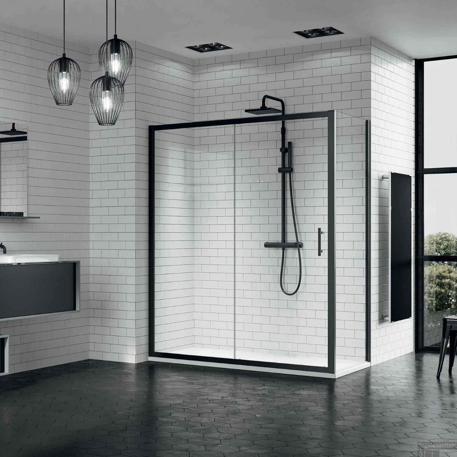 Schuifdeur Novellini Zephyros 2P Helder Glas 156×195 cm Mat Zwart Profiel