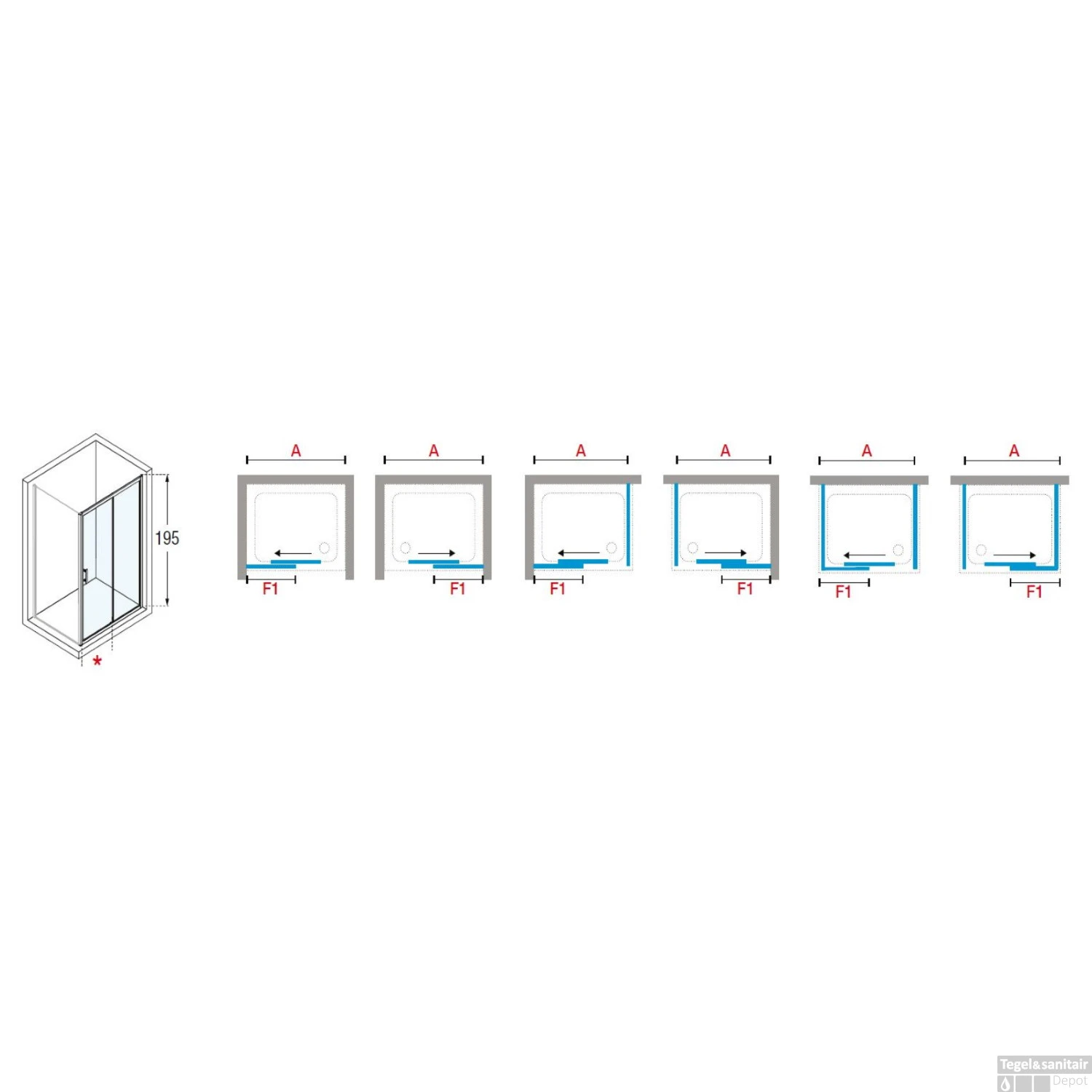 Specificaties Schuifdeur Novellini Zephyros 2P 156×195 cm: