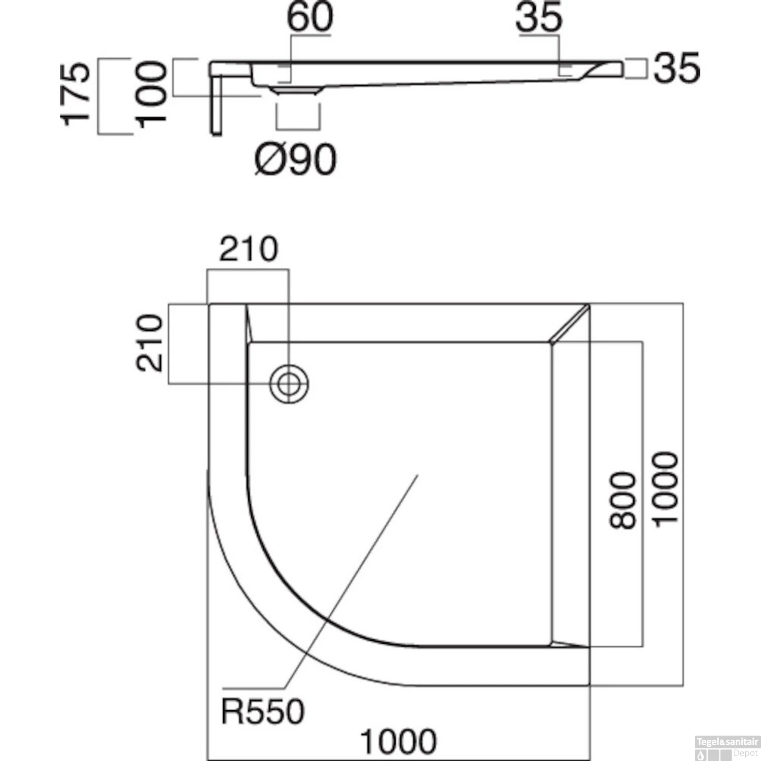 - – Afmeting afvoergat: 90 mm