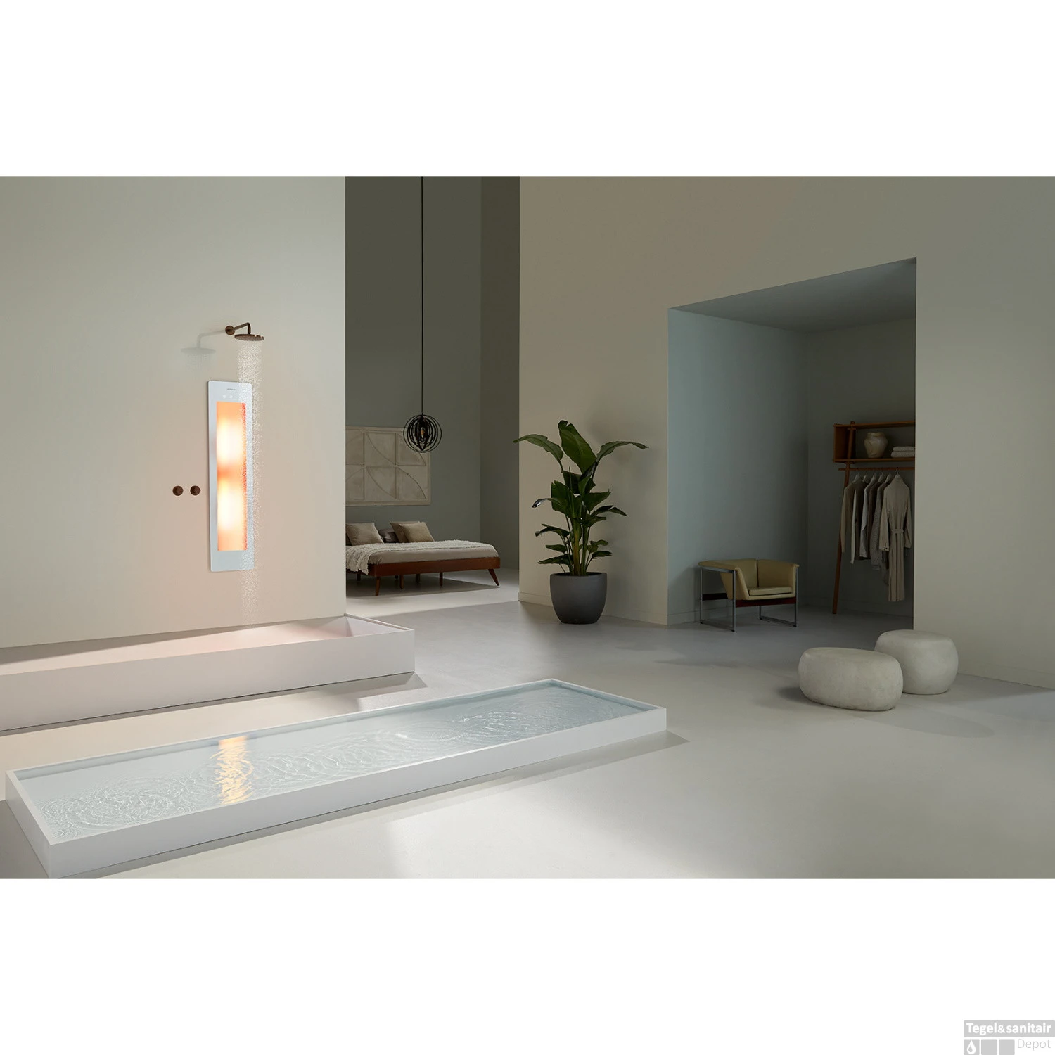 Specificaties Sunshower Plus M Round Infrarood en UV-licht 140×33 cm Inbouw – Opbouw vlak of hoek White: