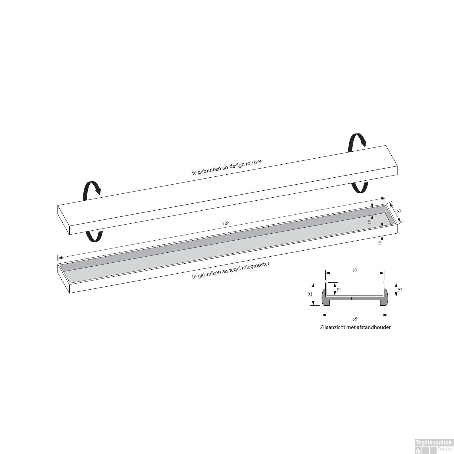 Een los tegelinlegrooster tbv de douchegoten van Brauer. Dit rooster is geschikt voor de douchegoot types STD/W/PS. De afmeting van het rooster is 80×7 en heeft de kleur van geborsteld gunmetal. Het rooster kunt u op twee verschillende manieren plaatsen. U kunt kiezen voor de Zero look, waarbij het rooster helemaal dicht is, of het tegelinlegrooster, waarbij u de douchegoot helemaal weg laat vallen tussen uw tegels. (Zie afbeeldingen)