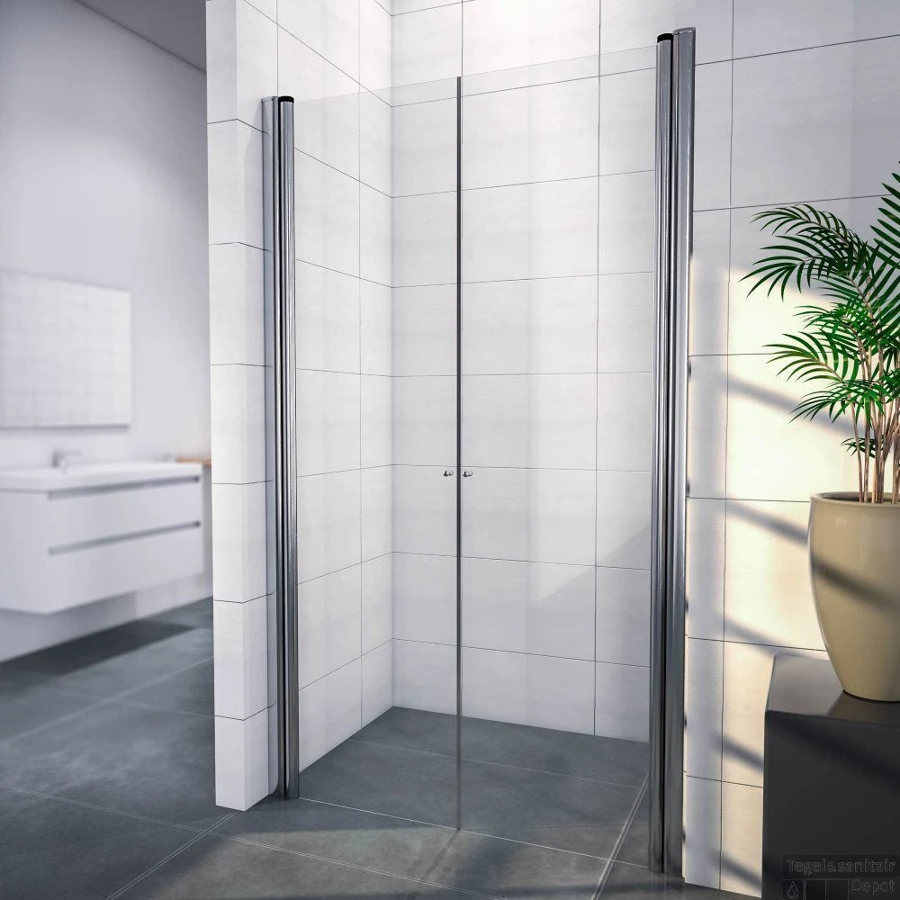 De nisdeur is gemaakt van 6 mm dik veiligheidsglas wat zorgt voor een mooi uitstraling. Het glas is voorzien van een NANO antikalk coating, welke beschermt tegen kalk en geeft de douchecabine altijd een glanzende uitstraling.