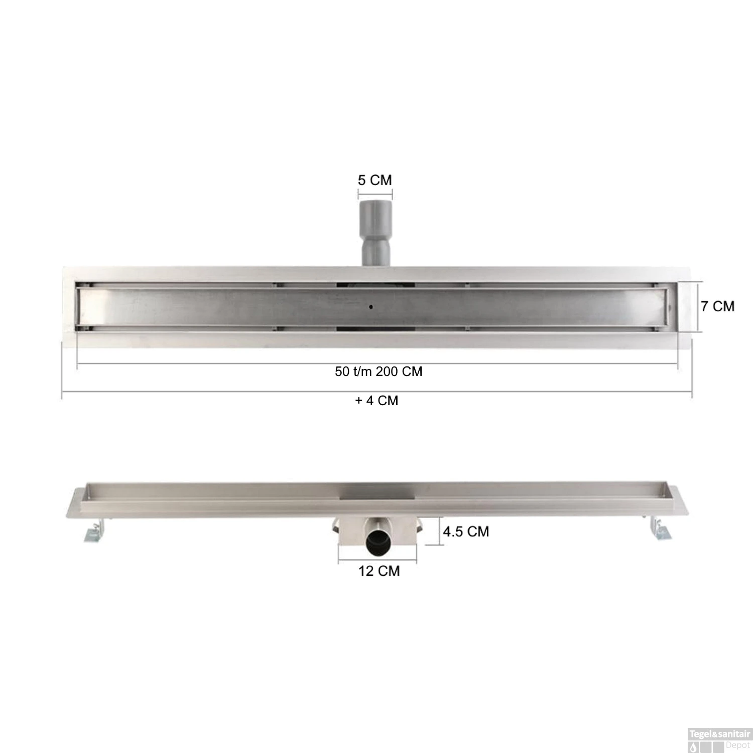 De slanke goot met tegelrooster van 7cm is volledig gemaakt van RVS. RVS glanst en is een uitstekende keuze voor een douchedrain door zijn vaste harde vorm. Het roest niet en gaat daardoor lang mee. Het voordeel van de douchegoot is dat u het sifon eruit kan halen om schoon te maken. Met een extra haarfilter kunt u de goot nog schoner houden en u voorkomt hiermee verstopping. De sifon is slechts 6.7cm diep (geïntegreerd).