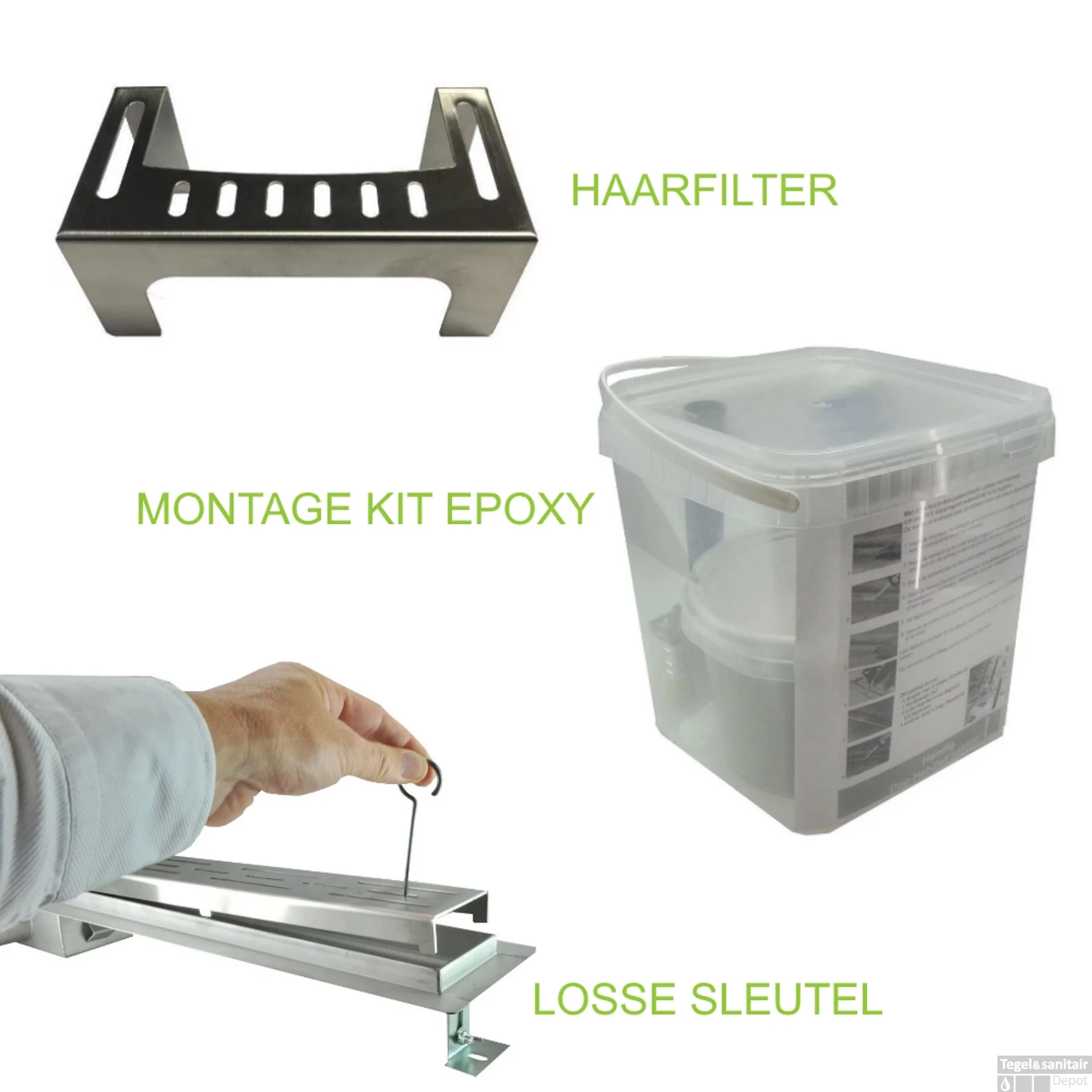 Er zijn veel verschillende maten verkrijgbaar van de douchegoot met een tegelrooster. Namelijk van 50cm tot en met 120 cm. De tegel rooster wordt standaard meegeleverd. Daarnaast is het mogelijk om de douchegoot met tegelrooster uit te breiden met onderdelen voor het optimaal kunnen gebruiken van uw nieuwe douchegoot.