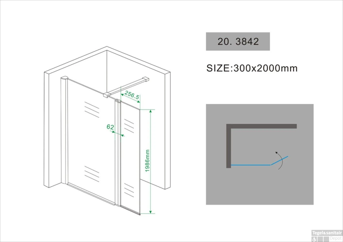 Wiesbaden Zijwand 30×200 Cm + Scharnierprofiel 10mm NANO Glas
