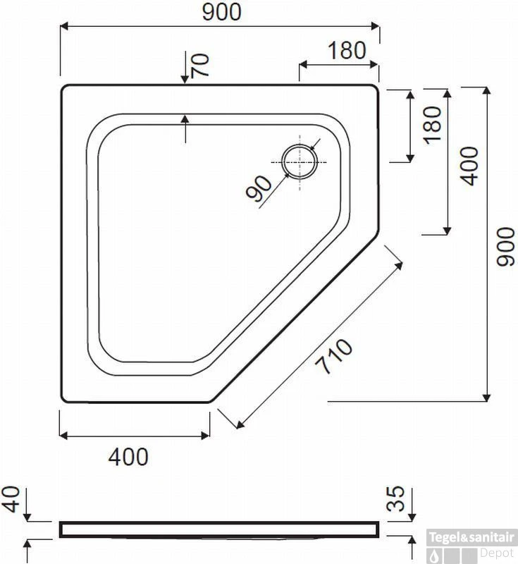 Douchebak vijfhoekig 90 x 90 x 3.5 cm.