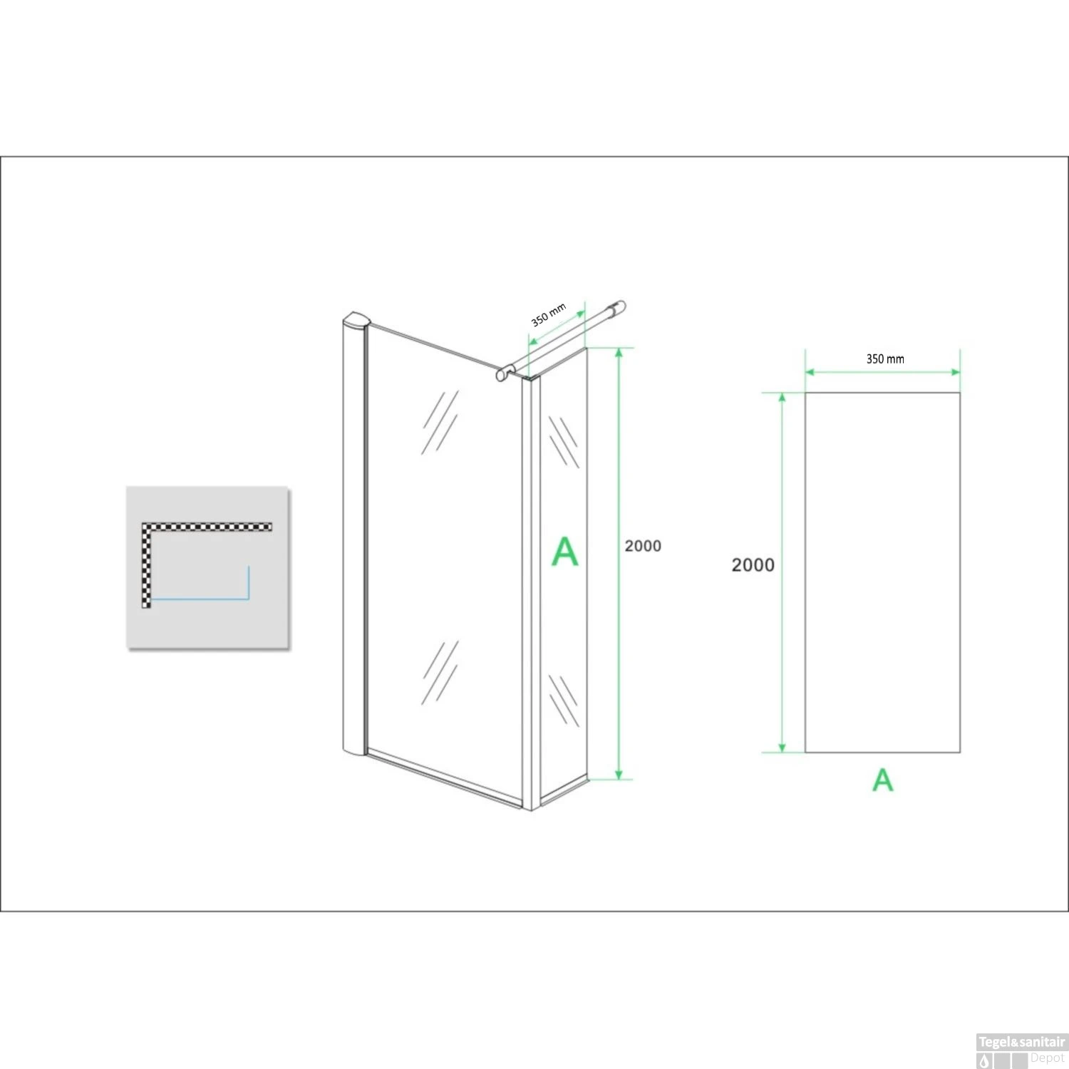 Let op! U kan de zijwand alleen op de hoek van de inloopdouche plaatsen. Niet aan de muur. De wand van de inloop douche word niet meegeleverd. Alleen het 35x200cm stuk.