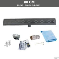 Zwarte Chromen RVS Douchegoot Flens met Uitneembaar Sifon 80x7cm 6,7cm Diep BLACK CHROME ROOSTER
